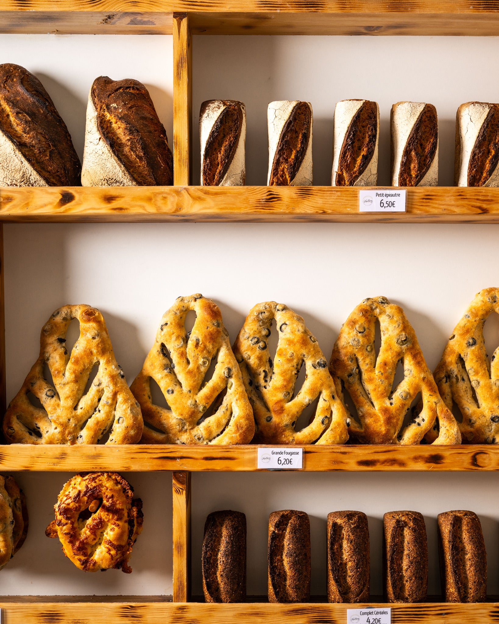 Dans ce fournil, chaque geste compte. Les classiques côtoient des créations signatures devenues emblématiques : le suisse chocolat, le nœud papillon caramel qui affole Instagram, ou encore les douceurs estivales aux fruits du marché – abricots juteux, figues rôties et bien d’autres.